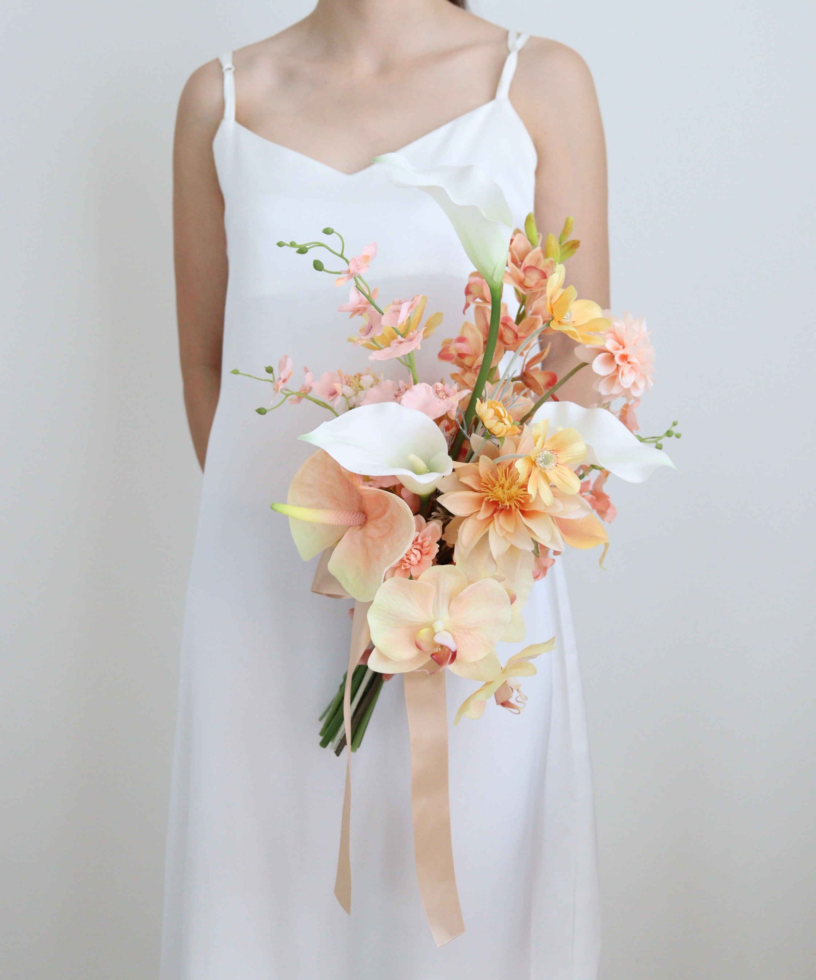 生花だと結婚式を挙げられる時期によってはお好きなお花をブーケに入れることが難しい場合もあると思いますが,アーティフィシャルフラワーだといつでもお好きなお花を選んで頂くことが出来ます。
