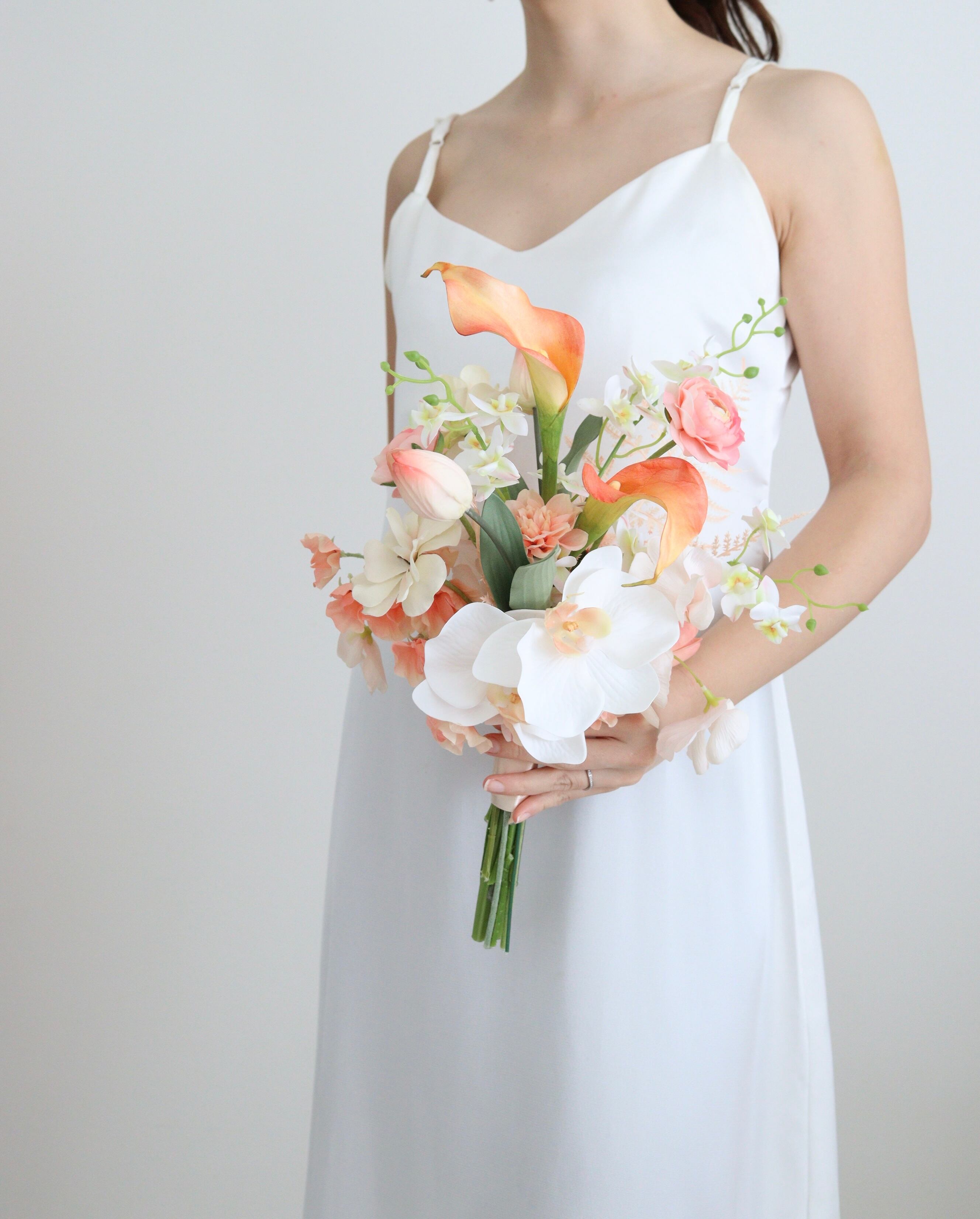 オレンジカラーとホワイトオーキッドのブーケ