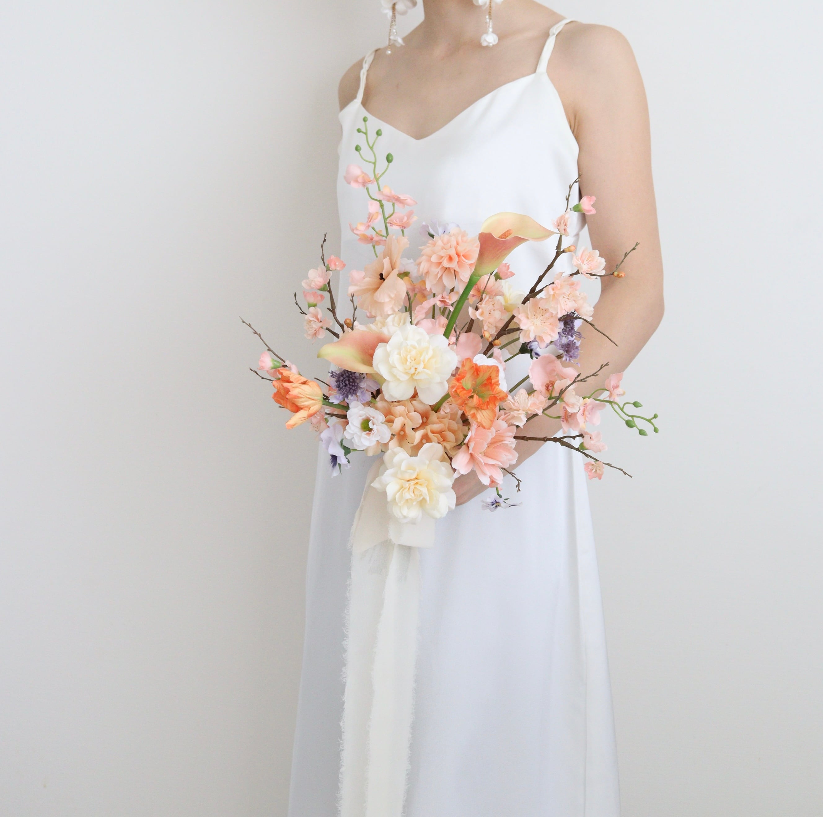 生花だと結婚式を挙げられる時期によってはお好きなお花をブーケに入れることが難しい場合もあると思いますが,アーティフィシャルフラワーだといつでもお好きなお花を選んで頂くことが出来ます。