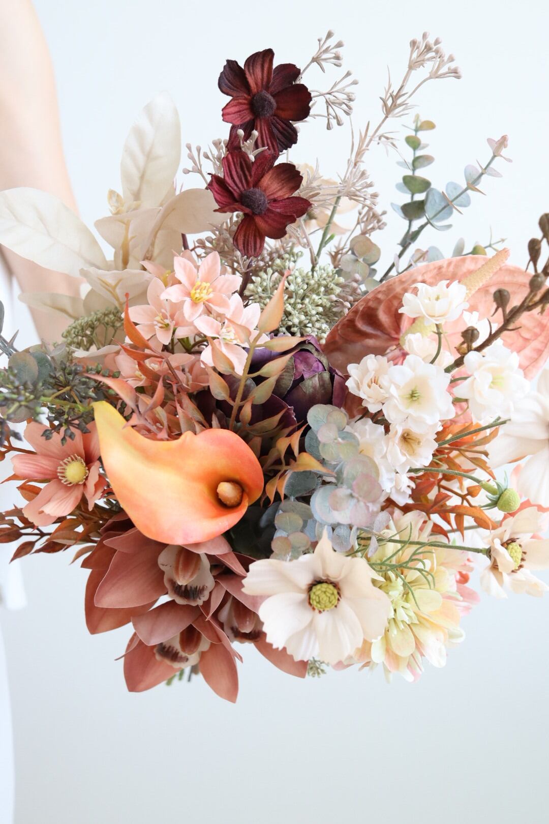 ブラウン×テラコッタの秋色ブーケ&ブートニア