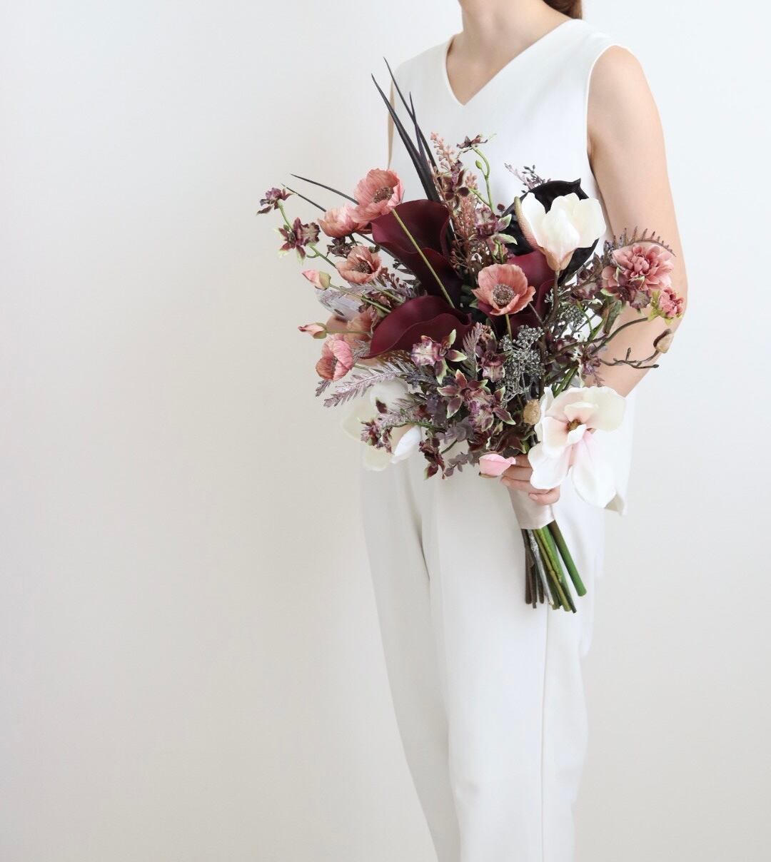 ボルドー×ホワイト 大人シックなウェディングブーケ&ブートニア 完成品