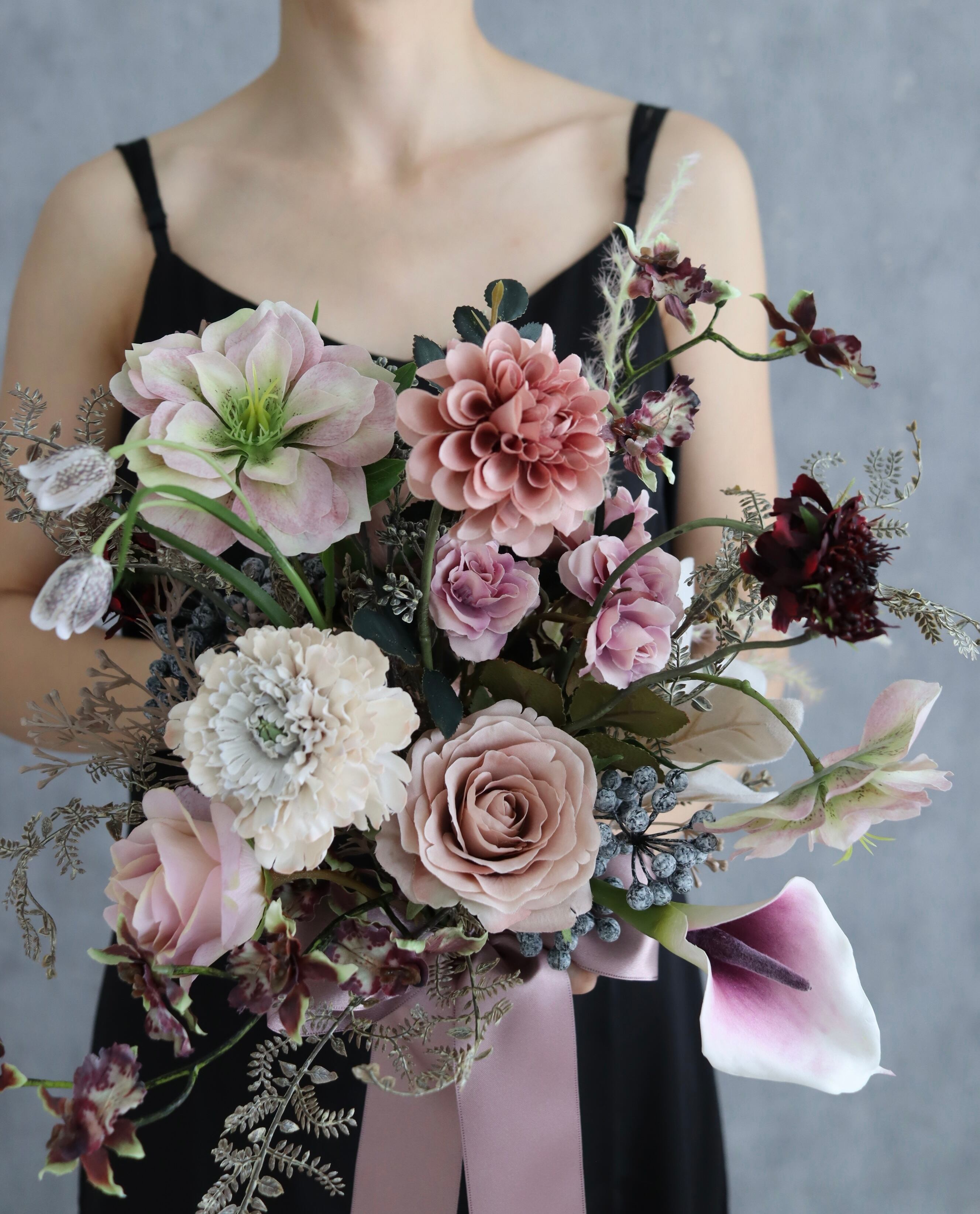 アンティークピンクのウェディングブーケ&ブートニア 完成品ウェディングブーケ 即納可能 造花ブーケ