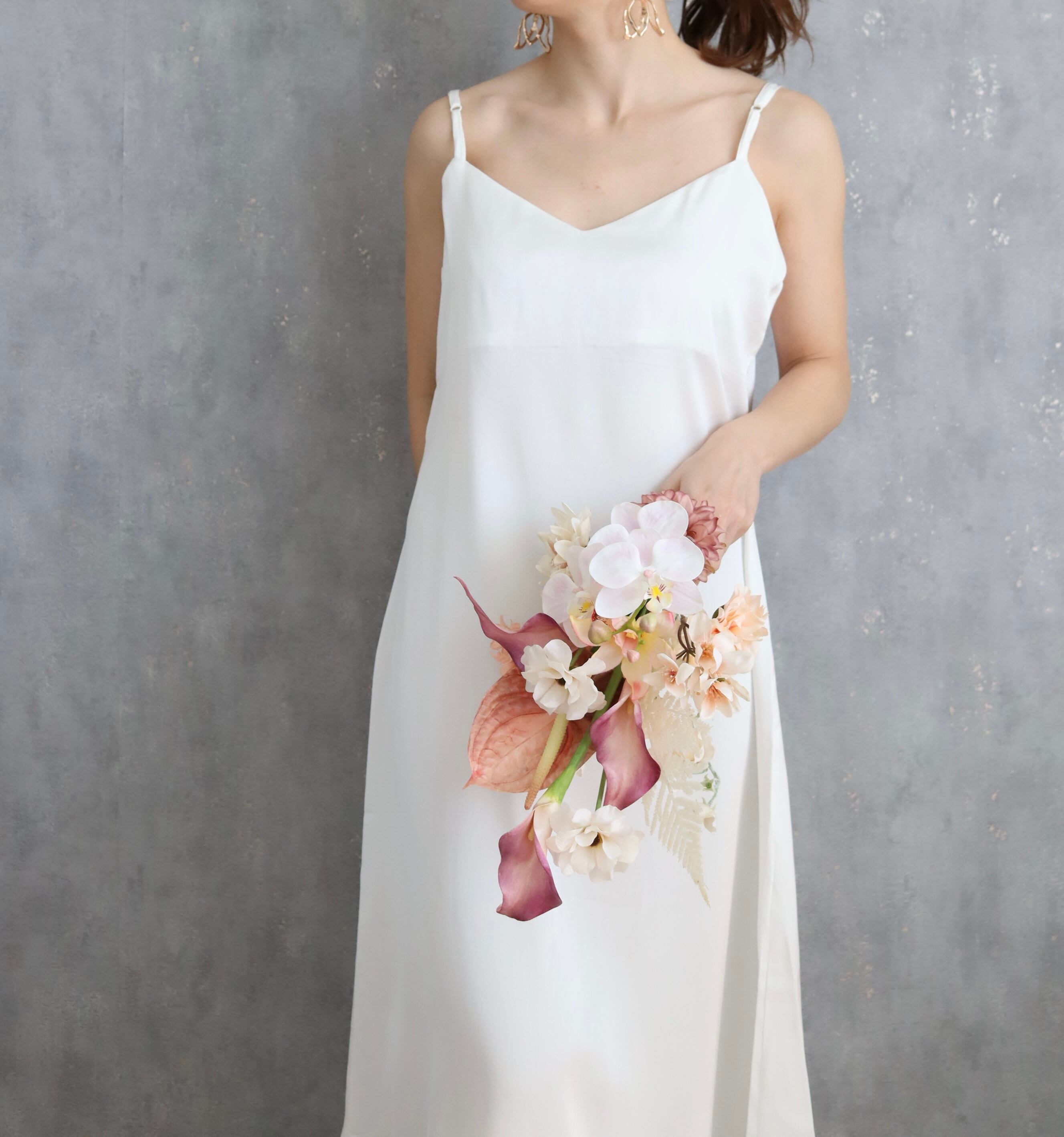 生花だと結婚式を挙げられる時期によってはお好きなお花をブーケに入れることが難しい場合もあると思いますが,アーティフィシャルフラワーだといつでもお好きなお花を選んで頂くことが出来ます。