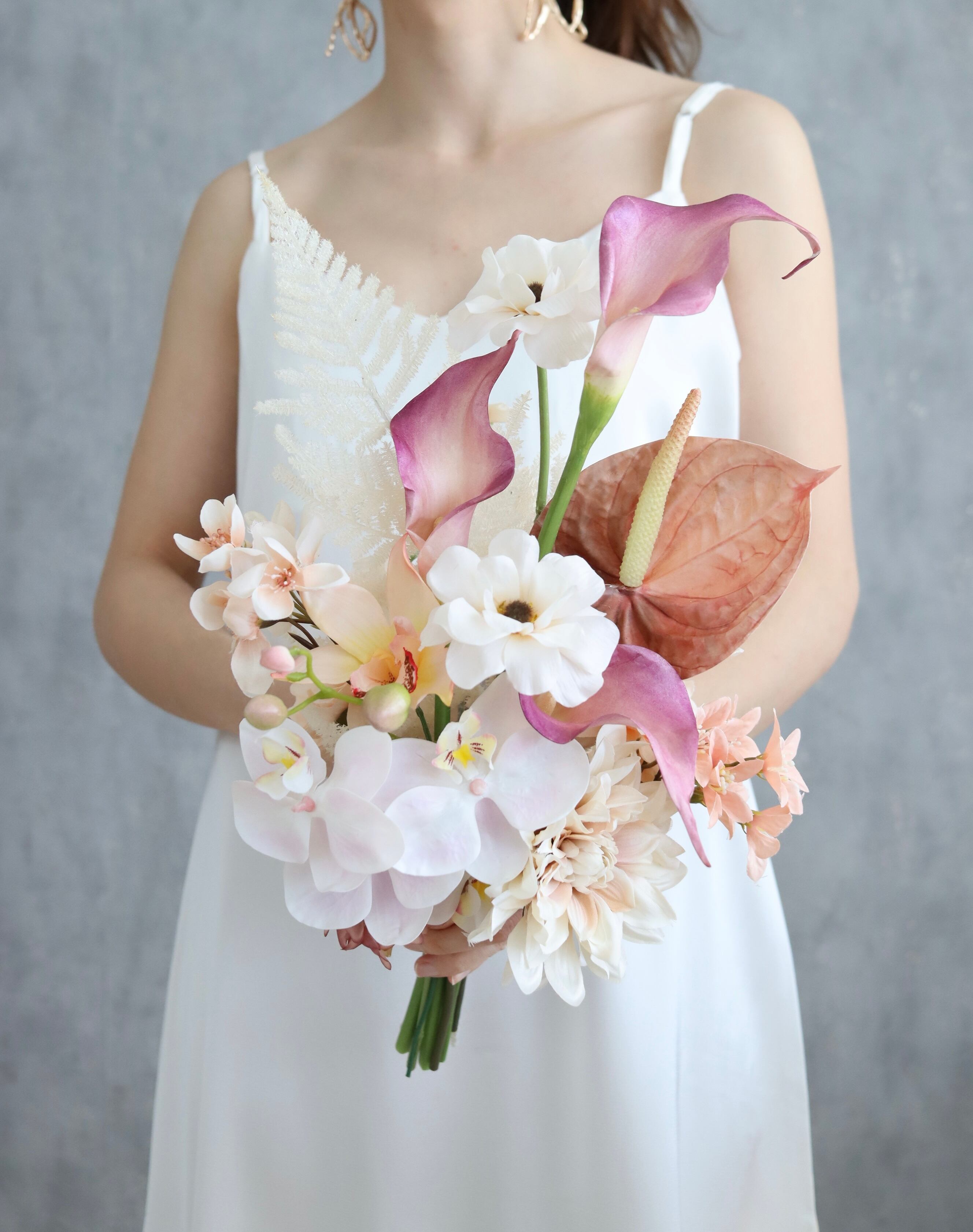 ニュアンスカラーの大人可愛いアームブーケ 完成品 即納可能