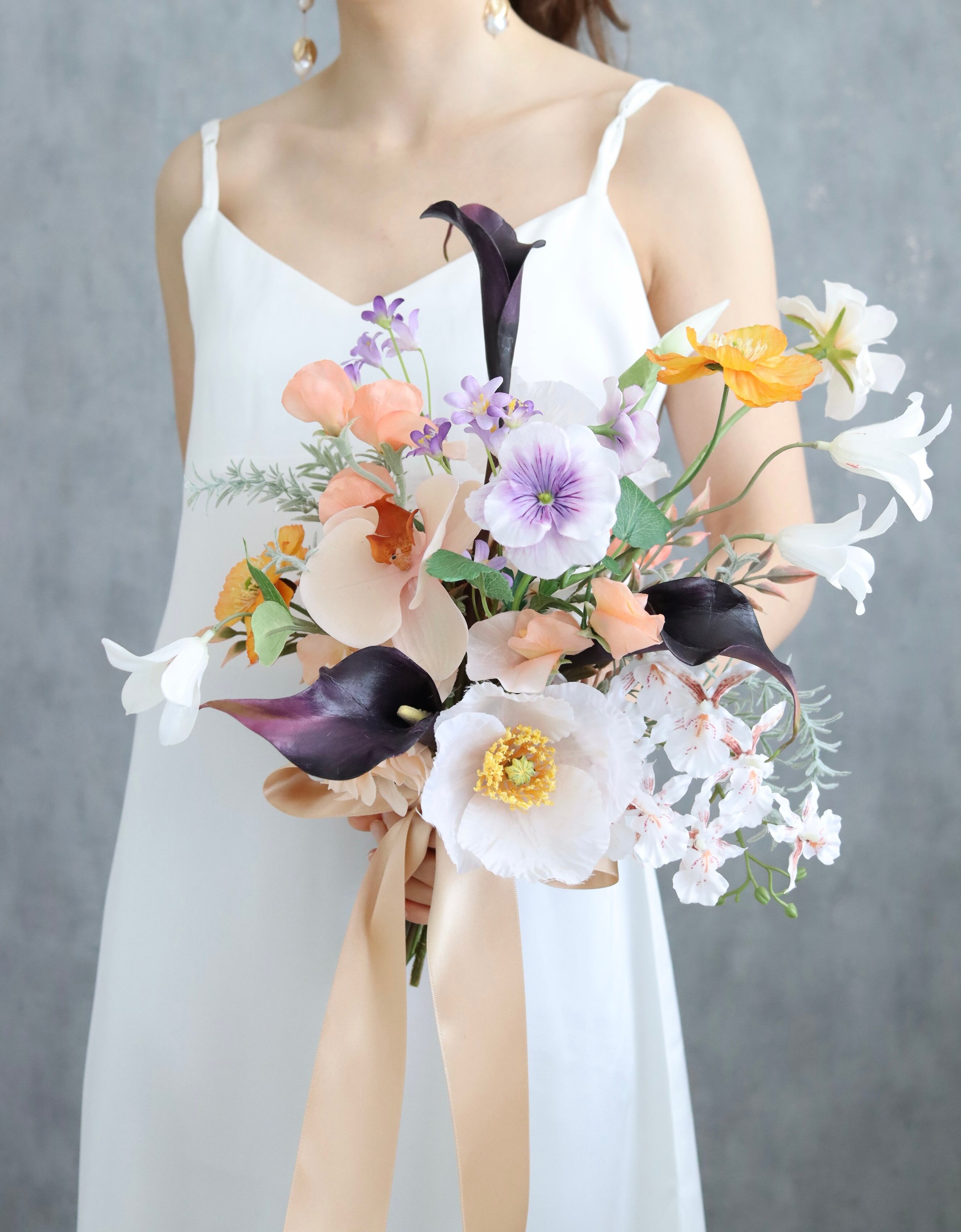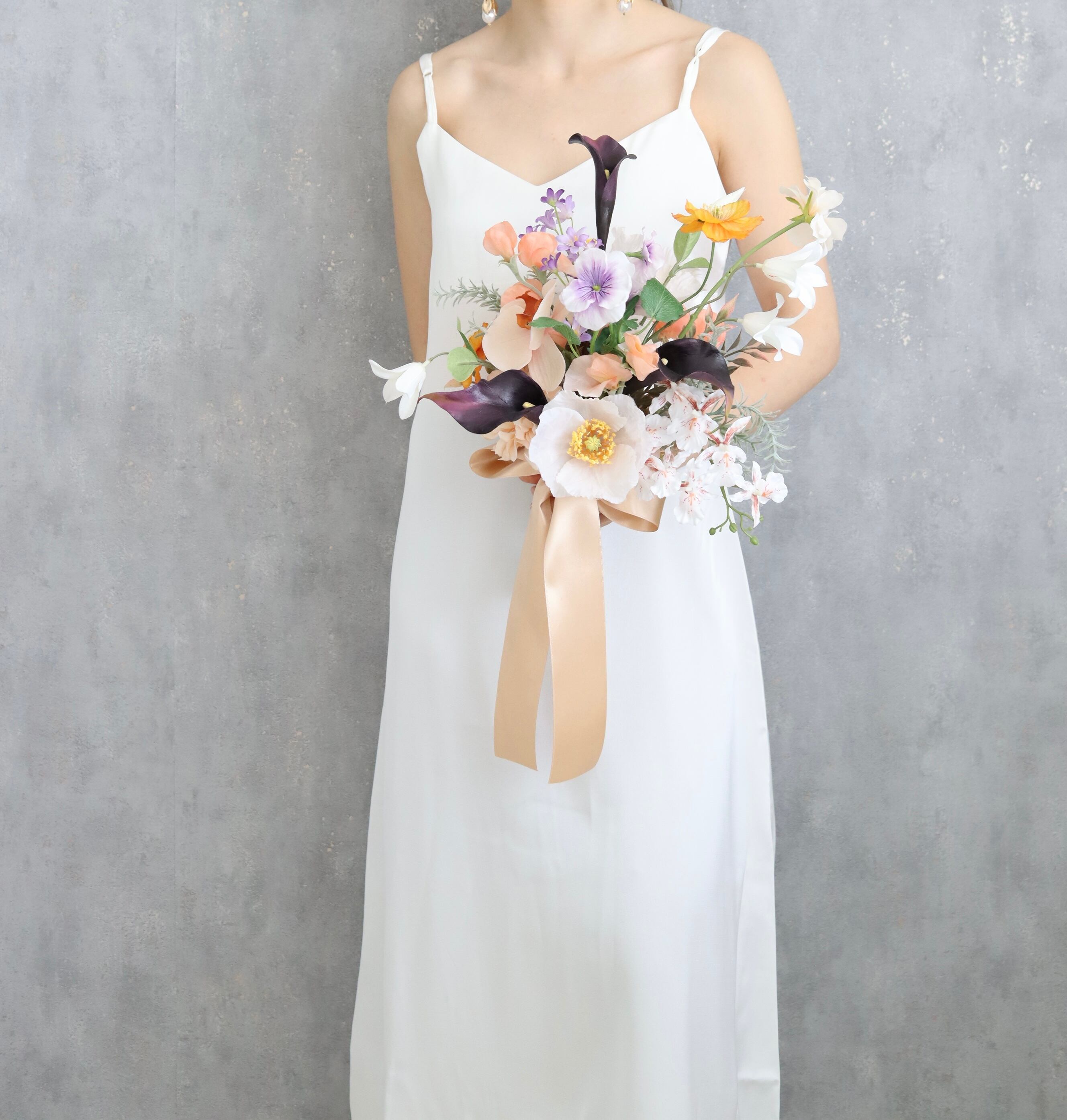 生花だと結婚式を挙げられる時期によってはお好きなお花をブーケに入れることが難しい場合もあると思いますが,アーティフィシャルフラワーだといつでもお好きなお花を選んで頂くことが出来ます。