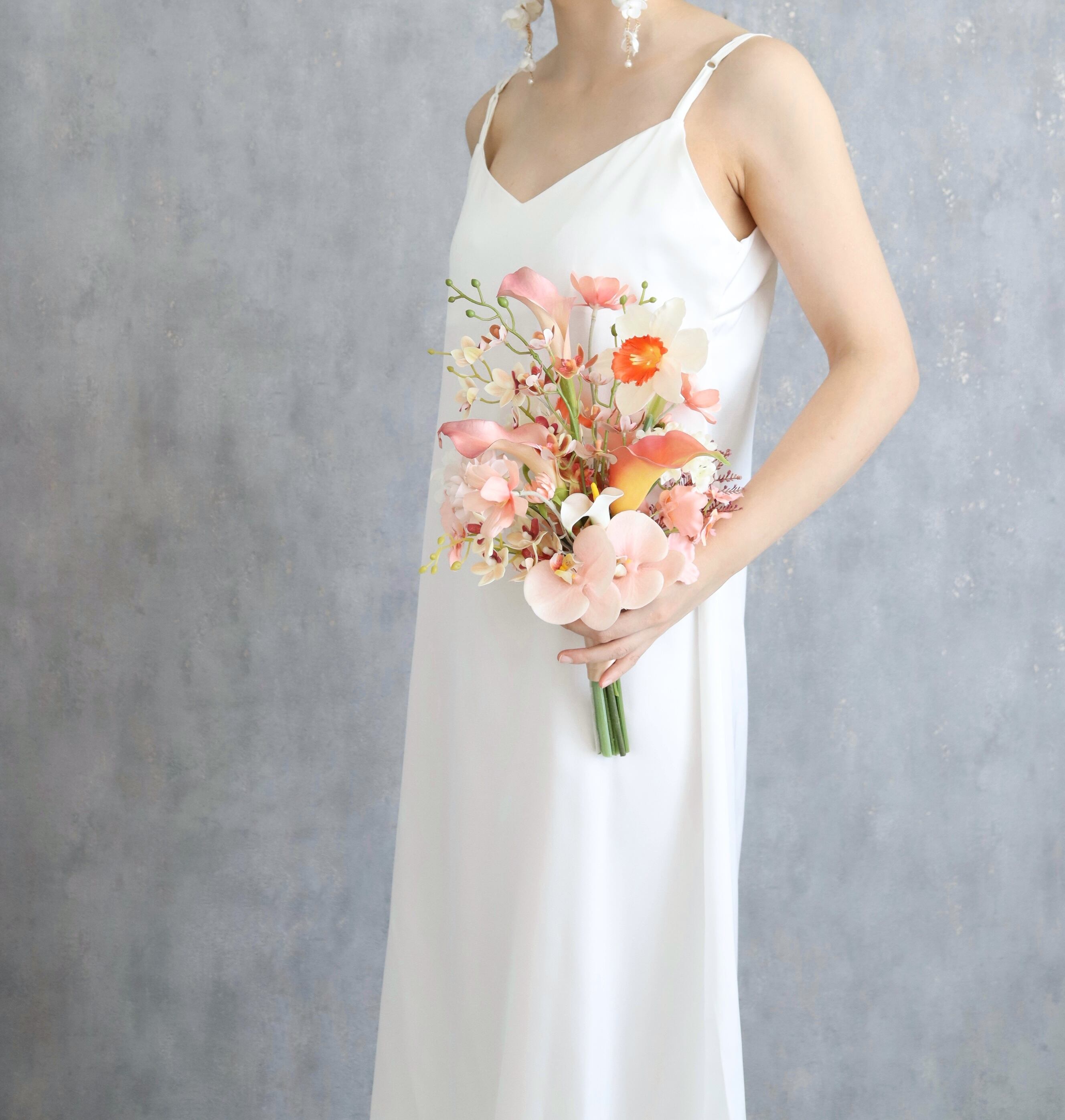 生花だと結婚式を挙げられる時期によってはお好きなお花をブーケに入れることが難しい場合もあると思いますが,アーティフィシャルフラワーだといつでもお好きなお花を選んで頂くことが出来ます。