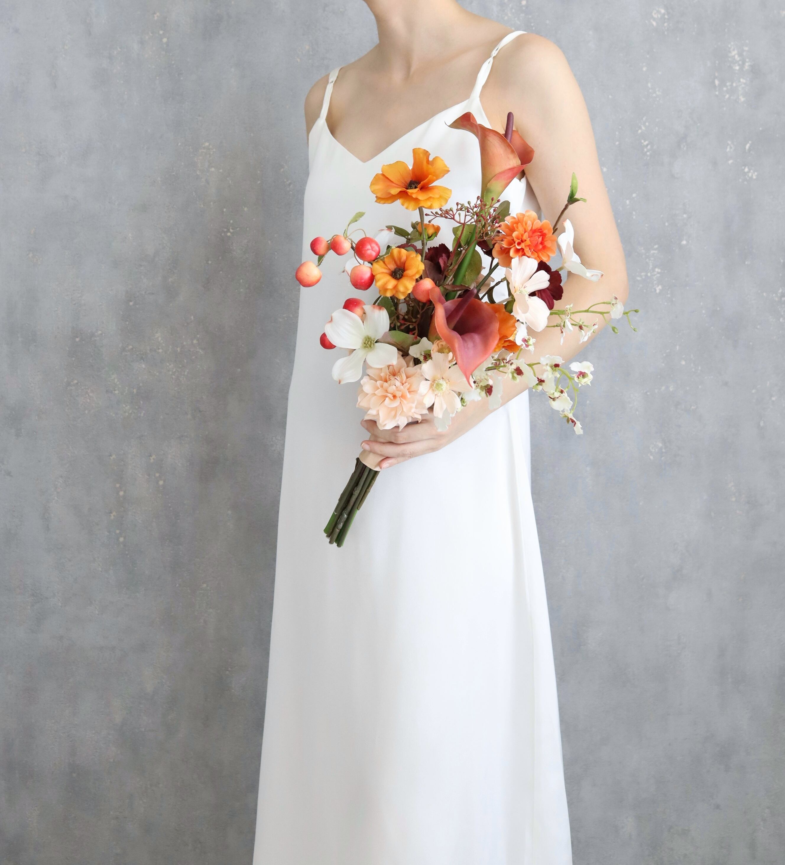 生花だと結婚式を挙げられる時期によってはお好きなお花をブーケに入れることが難しい場合もあると思いますが,アーティフィシャルフラワーだといつでもお好きなお花を選んで頂くことが出来ます。