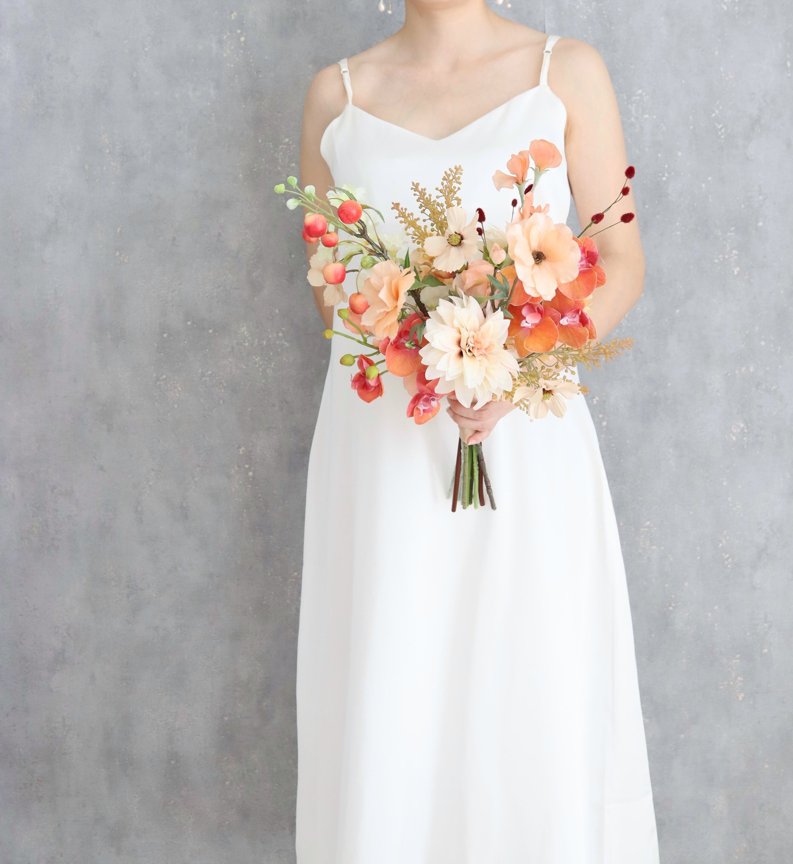 生花だと結婚式を挙げられる時期によってはお好きなお花をブーケに入れることが難しい場合もあると思いますが,アーティフィシャルフラワーだといつでもお好きなお花を選んで頂くことが出来ます。
