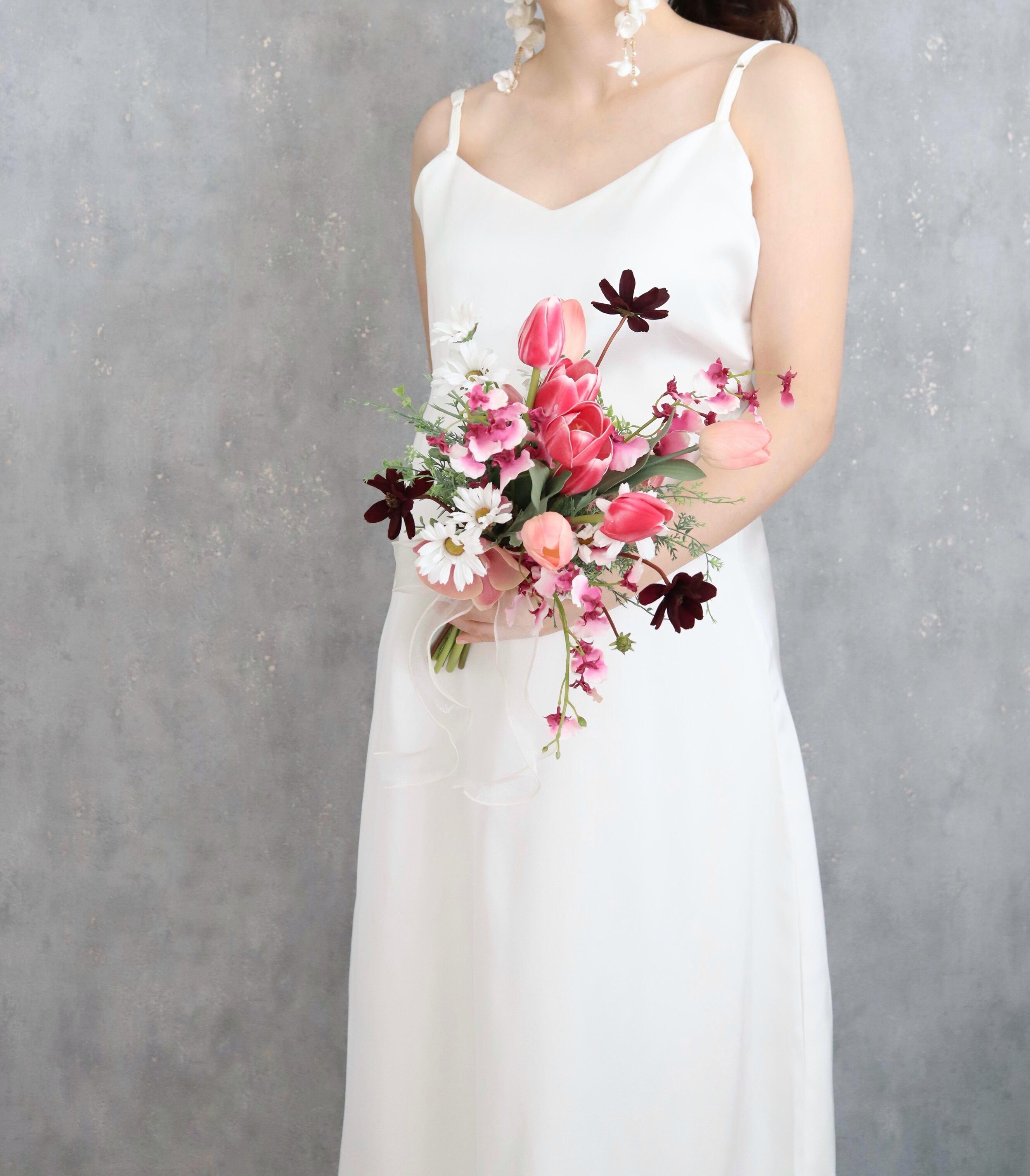 生花だと結婚式を挙げられる時期によってはお好きなお花をブーケに入れることが難しい場合もあると思いますが,アーティフィシャルフラワーだといつでもお好きなお花を選んで頂くことが出来ます。