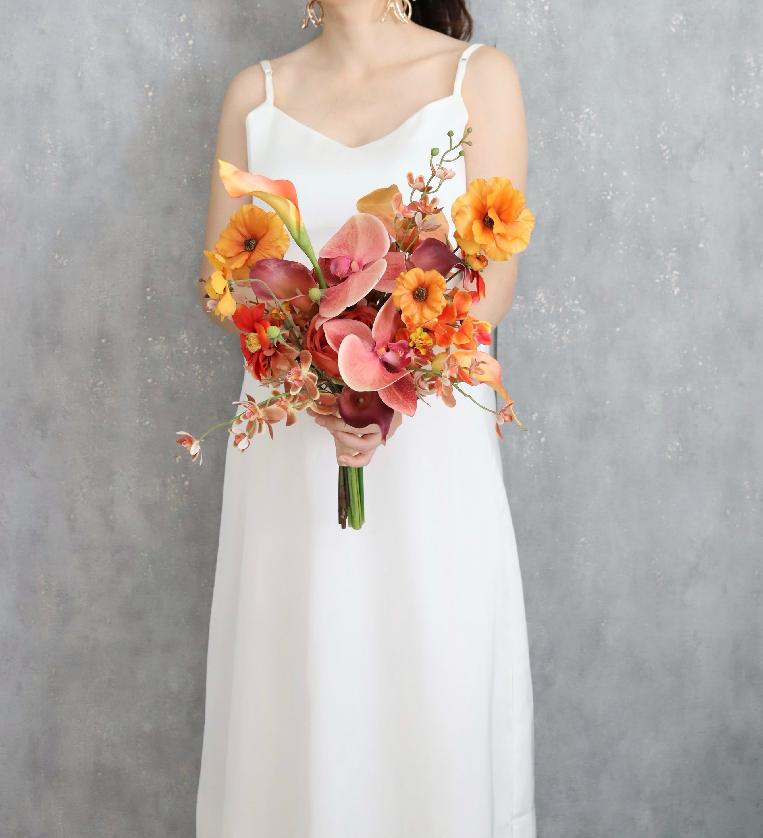 生花だと結婚式を挙げられる時期によってはお好きなお花をブーケに入れることが難しい場合もあると思いますが,アーティフィシャルフラワーだといつでもお好きなお花を選んで頂くことが出来ます。